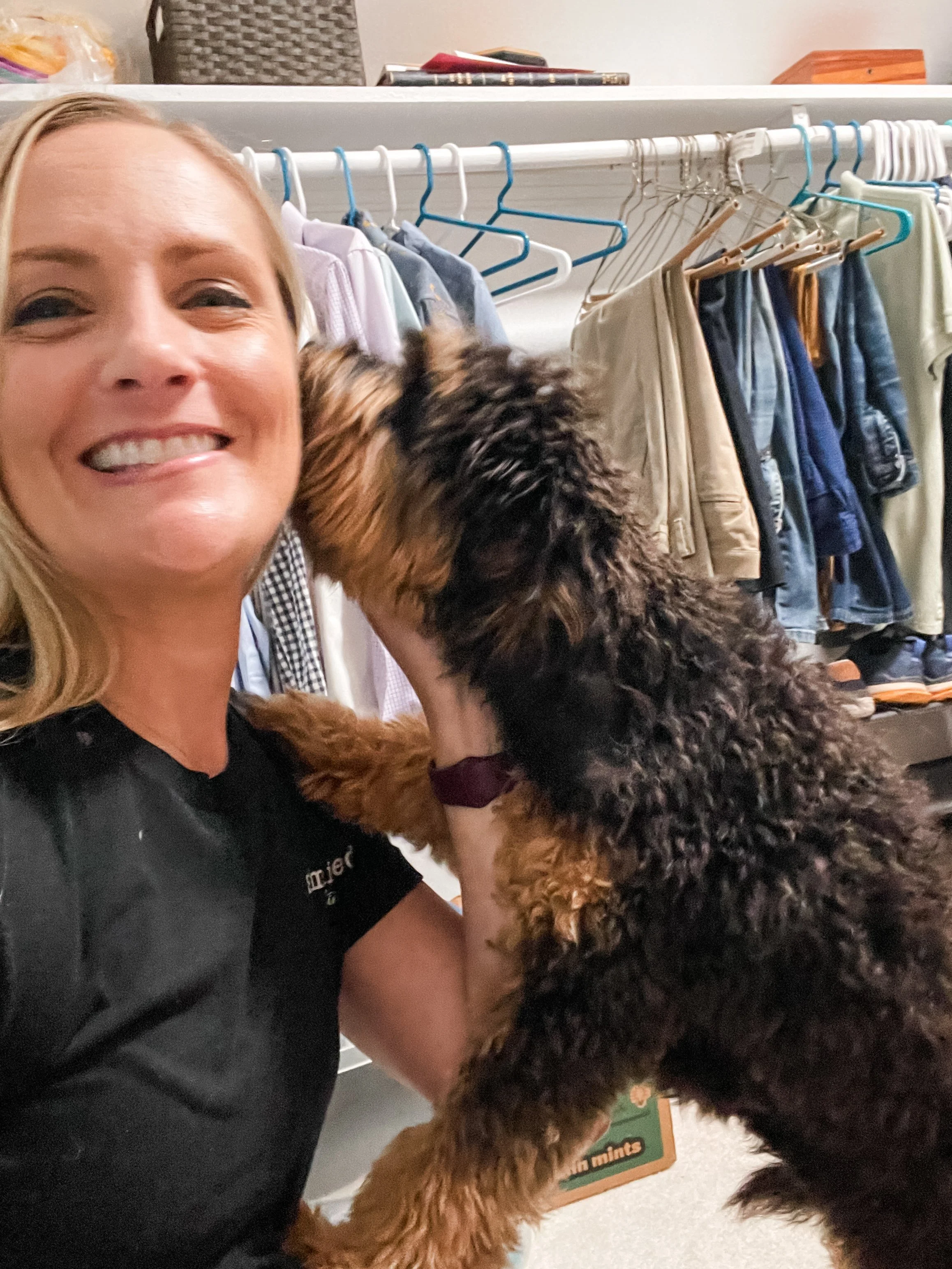 As we’re decluttering with you, you may get overwhelmed. Please feel free to step away from the space and take a breather. Get a cup of coffee, start a load of laundry, watch the squirrels outside the window, or play with your dog. We know this process is overwhelming and you might get decision fatigue, so step away for a reset whenever you feel the need.